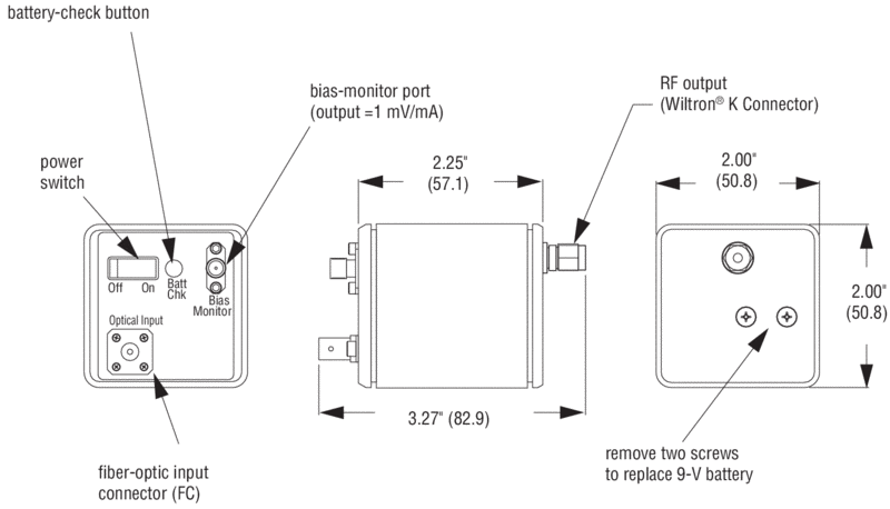 Choose from FC single-mode or multimode connectors. With optical-fiber input, the photodiode module can be connected directly to an electronic instrument, eliminating the need for an expensive high-frequency microwave cable. The fiber-coupled input also prevents signal distortion. Multimode versions have 50-µm-core fiber input and an internal GRIN lens for focusing onto the photodetector. In these MM versions, chromatic dispersion of the GRIN lens decreases the usable wavelength range.