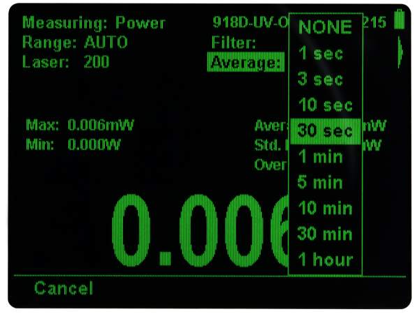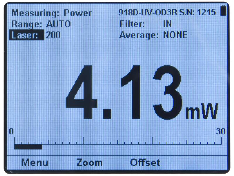 The 1919-R offers a choice of real time or averaged measurements in watts, watts per area, joules, joules per area, or a unitless ratio against a reference value, depending on the detector type. The 1919-R provides a larger number of measurement modes, when compared to other power meter models. These include Pulsed Power value, when connected to a 919P series thermopile detector, for a pulsed laser source, and total accumulated energy (exposure) over a period of time, when connected to a photodiode or a 919E series pyroelectric detector.