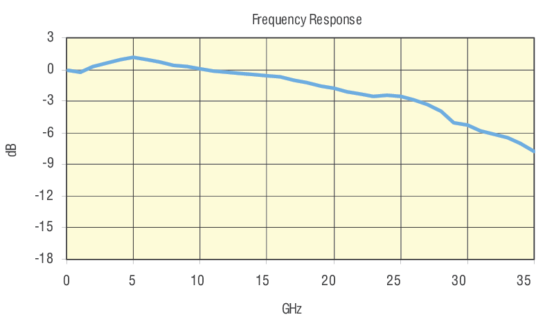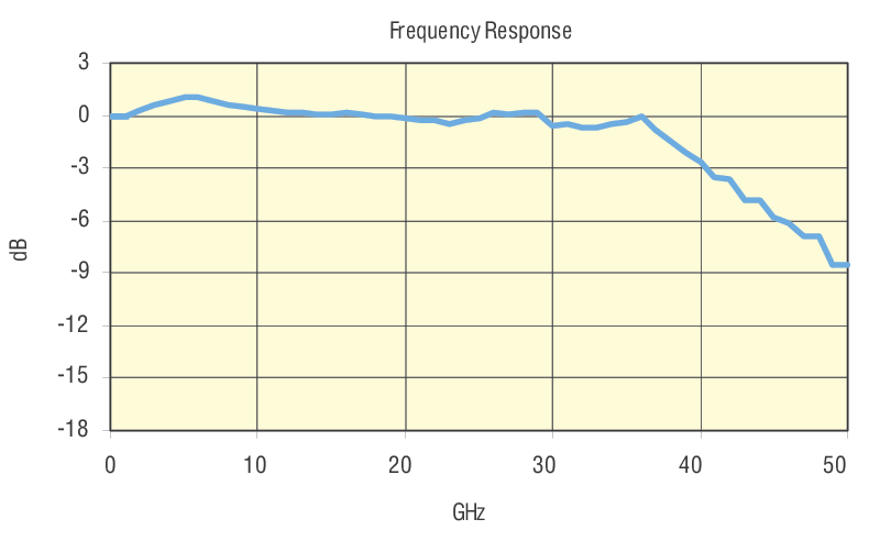 In Model 1474-A an InGaAs PIN photodiode is followed by a low-noise, linear, high-bandwidth amplifier to provide a 38 GHz bandwidth. In Model 1484-A-50 a larger GaAs photodiode is followed by the same amplifier to provide a 22 GHz bandwidth.