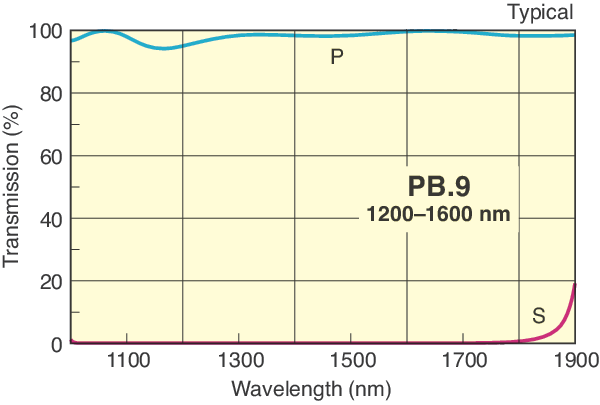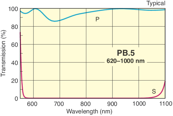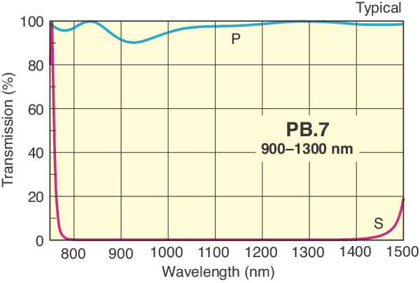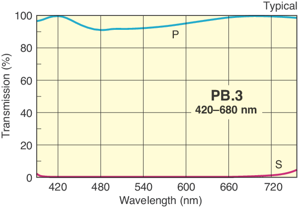 Four broadband multilayer coatings are offered covering the 420–680 nm , 620–1000 nm, 900–1300 nm, and 1200-1600 nm wavelength ranges. An unpolarized beam is split into two orthogonal, linearly polarized components. P-polarized light is transmitted, while s-polarized light is reflected, both with negligible absorption. The extinction ratio is better than 500:1, yet it averages 1000:1.