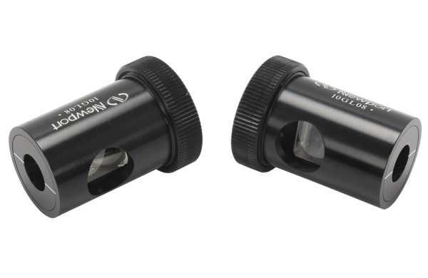 The Glan-Laser Calcite polarizer has a black anodized aluminum housing. The knurled ring at the end of the housing will unscrew to yield a 1.063-20 thread. This thread conveniently screws into Newport's popular rotation mounts and stages such as