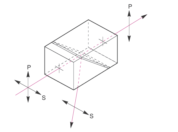 Glan-Laser Polarizers are fabricated using two calcite prisms made of high-grade, birefringent calcite crystals. The prisms have the same optic axis orientation as one another, which is parallel to the plane of reflection and perpendicular to the propagating beam. With calcite’s birefringent nature, waves polarized in the direction of the optical axis propagate with a different index of refraction than waves polarized orthogonally to the optical axis. Birefringence in Glan-Laser polarizers causes the ordinary polarization component of an incident beam to undergo total internal reflection (TIR) at an internal glass-to-air interface. The transmitted light through the polarizer is made up of only the leftover extraordinary polarization component. These transmitted extraordinary rays are highly polarized, but the reflected ordinary rays are only partially polarized.