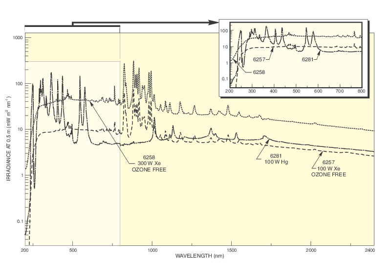 Mercury (Hg) arc lamps are ideal light sources for applications that require high intensity spectral lines emitted in the deep UV to visible light regions. Their unique UV emission spectra make them popular for unique applications that need enhanced UV output such as UV spectroscopy, UV curing and other industrial processes, and environmental and medical applications.