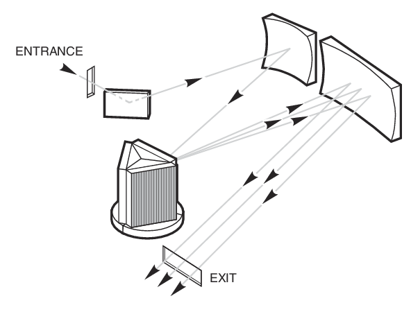 - Czeny-Turner optical design produces flat image plane with minimum aberration