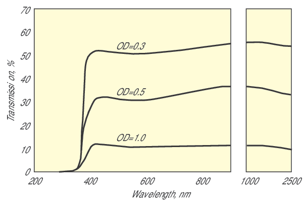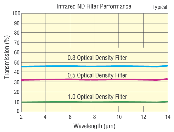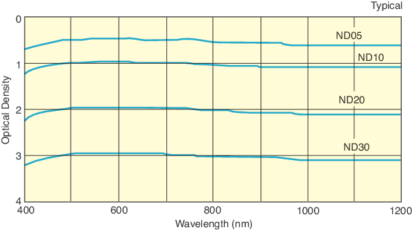Made with Inconel® metallic coatings on glass substrates, the Schott Borofloat glass ND filters provide spectrally uniform attenuation over the wavelength range from 0.4 to 2.0 µm. The reflective nature of the coatings helps reduce thermal effects when these filters are used with moderate-power lasers. Filters may be used individually or combined in series to obtain any desired density from 0.04 to 2.5.