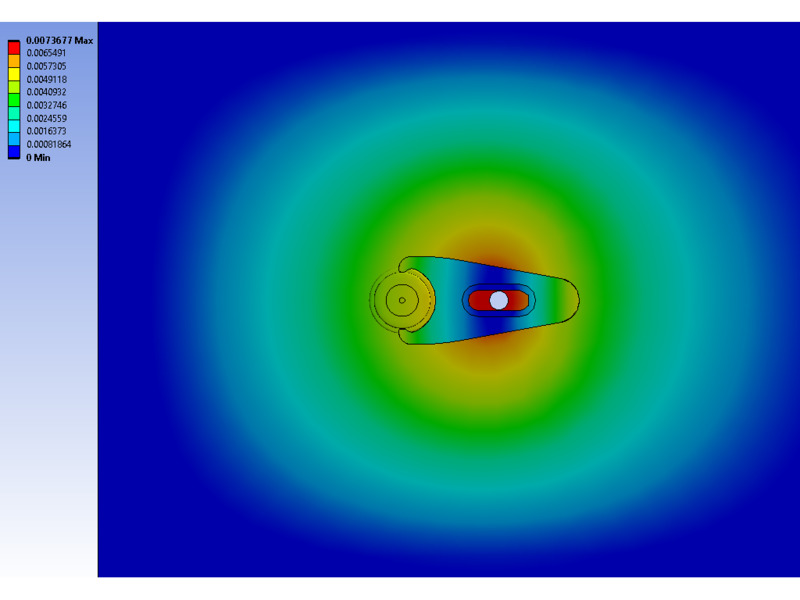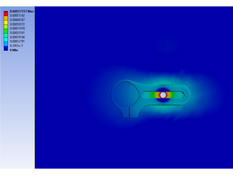 With a non-briding clamping fork (right), the table deforms at a maximum of .00058 in. when torqued to a maximum of 75 in-lb. In comparison to the industry standard, the deflections are greatly reduced. Under static conditions, the von mises stresses around the clamp are far less than the table’s yield strength resulting in significant margins of safety for yield and ultimate strength, thus any permanent deformation is unlikely.