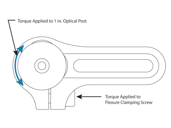To securely hold a 1 in. optical post, the flexure clamping screw should be tightened with 20-30 in-lb of torque for optimal performance.