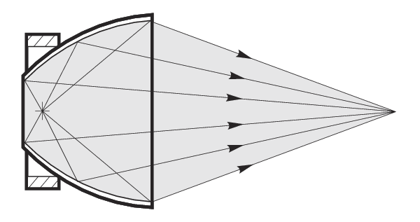 Paraboloidal reflectors collect radiation from a source at its focal point and reflect it as a collimated beam, parallel to the axis. Alternatively, they can tightly focus a collimated beam at its focus.
