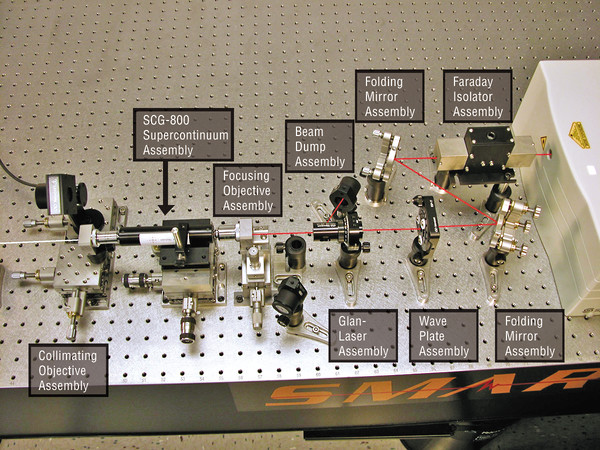 The Newport Supercontinuum kit is a complete solution from Newport and Spectra-Physics designed specifically for the generation of supercontinuum with a femtosecond Ti:Sapphire laser such as the Tsunami® or Mai Tai® ultrafast oscillators. This kit is intended to assist and educate the researcher in the part selection and design of a supercontinuum experiment setup in their laboratory and is the direct result of numerous interactions and requests for support from researchers getting into the new field of supercontinuum generation.