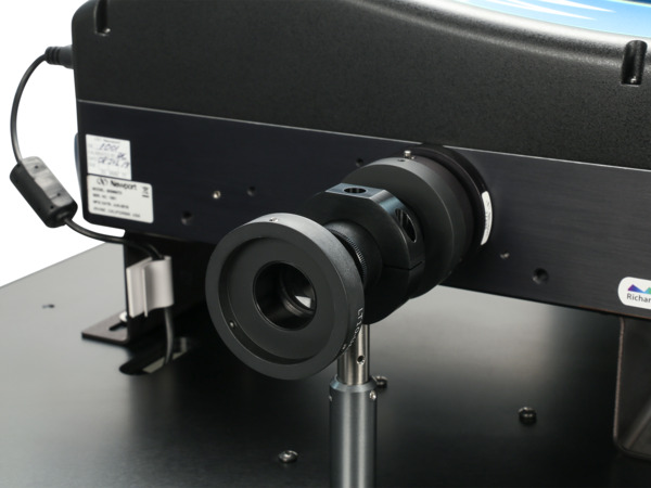 The TLS system includes a manual iris, adjustable from 2-36 mm diameter, in the light output path. This iris is a convenient method for preventing detector saturation. By reducing the size of the output aperture to reduce output light intensity, a neutral density filter and mechanical coupling are not necessary.