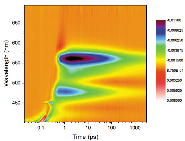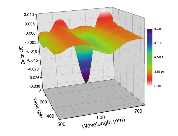 Below is an image of some of the sample data that we’ve collected with TAS. It shows a sample of gold nanorods. In our lab, TAS has been used to help researchers publish papers on the matter. We have also tested nanoparticle, photovoltaic, photosynthetic, and photoinitiator samples, amongst others. Please inquire for a list of papers published using our systems.