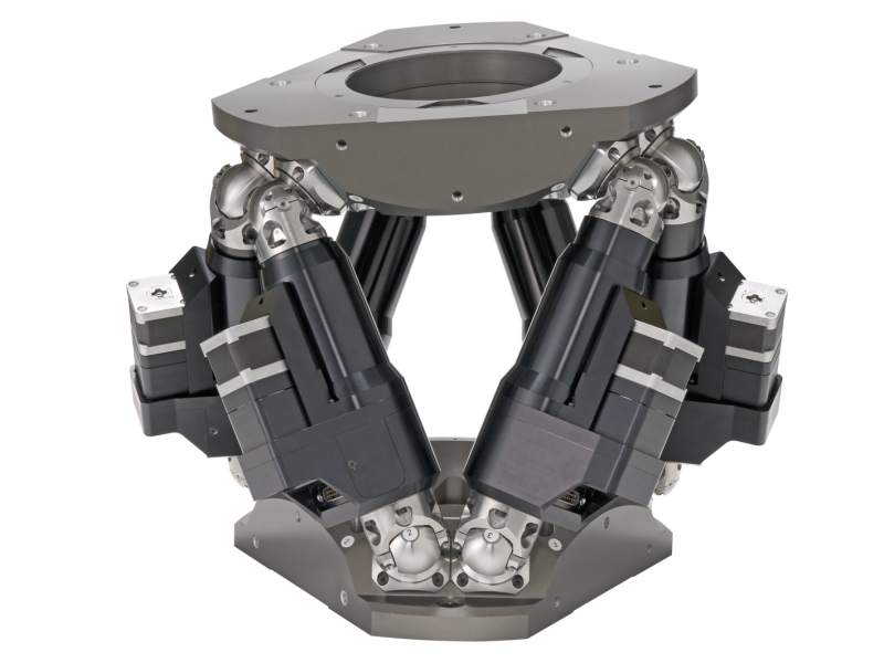 Hexapods are ingenious and effective solutions to complex motion applications that require high load capacity and accuracy in up to six independent axes. Parallel kinematic motion devices provide six degrees of freedom (X, Y, Z, pitch, roll, and yaw) in a compact solution to multi-axis positioning. As an alternative to stacking multiple stages, hexapods have no moving cables, are lower in overall cost, and offers error compensated motion.