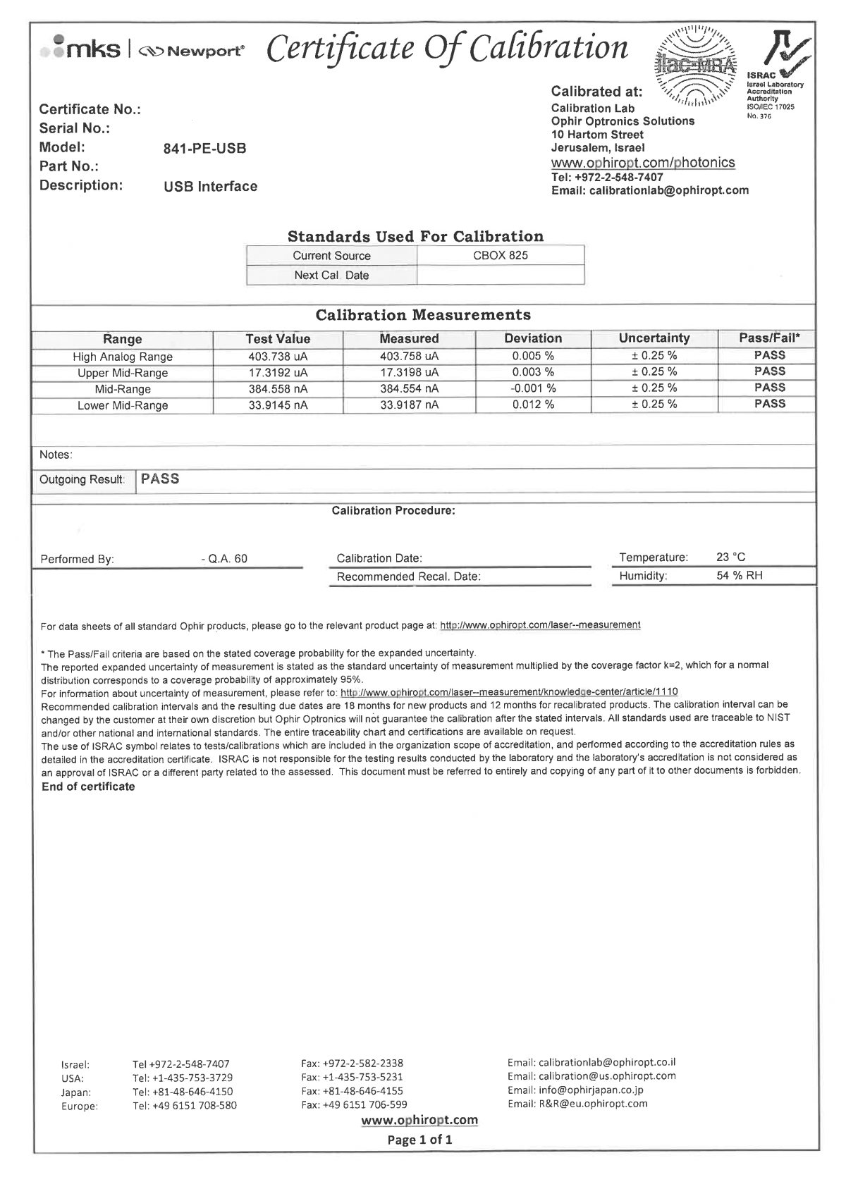 Calibration Report Included