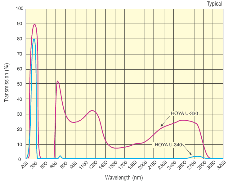 - Hoya U-330 or U-340 dark glass