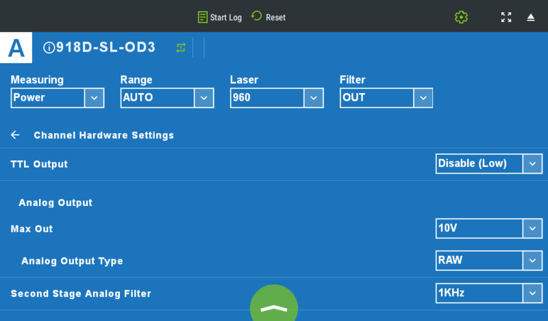 With seven analog filters, ranging from 0.5 Hz to 250 kHz, and the averaging function, ranging from one second to one hour of moving average, one can configure the power meter for either the stable average power measurements of a continuous wave light source, fast tracking of a rapidly changing optical power level, or the peak-to-peak measurements of a modulated signal. The analog filter is an electronic low pass filter used to eliminate high frequency noise, while averaging allows smoothing the data by applying moving average of the obtained data. By adjusting these settings, it is possible to make stable power measurements while the beam is modulated.