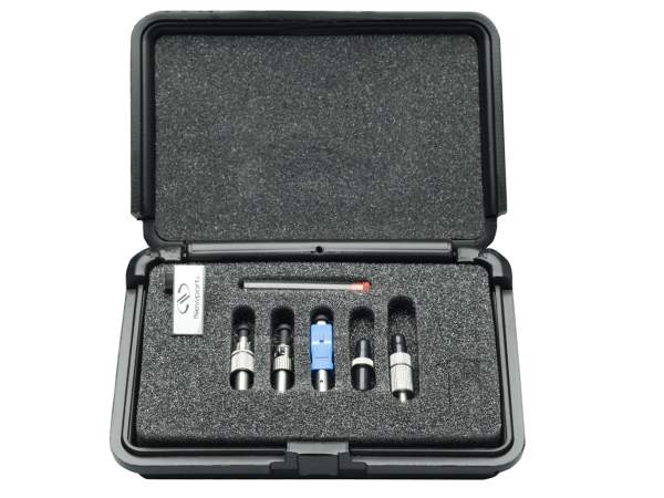 Also available are kits that contain a single adapter body, FC, SC and ST interchangeable connector tips, a universal mating sleeve for quick ferrule-to-ferrule connections and a fiber stop to ensure that bare cleaved fibers are flush with the front of the connector ferrule. Piano wires for cleaning blocked ferrules are also included with all adapters.