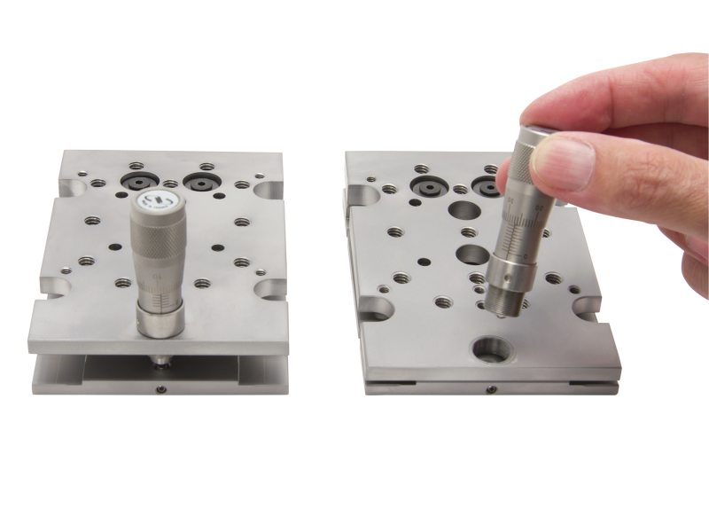 The M-TGN80 Tilt Platform precisely controls tilt for one rotational axis over a range of ±2.86° with 2 arc sec Sensitivity. The 80 x 120 mm mounting plates are fabricated from stainless steel for excellent rigidity and stability. The top plate features M4 and M6 threaded mounting holes. The included micrometer is preloaded for smooth, backlash-free motion. Clearance holes in the top plate facilitate mounting of a wide range of components to the platform. TGN Series stages attach to tables and breadboards via clearance slots in the bottom plate and are used for high-resolution alignment of components, especially large or heavy equipment.