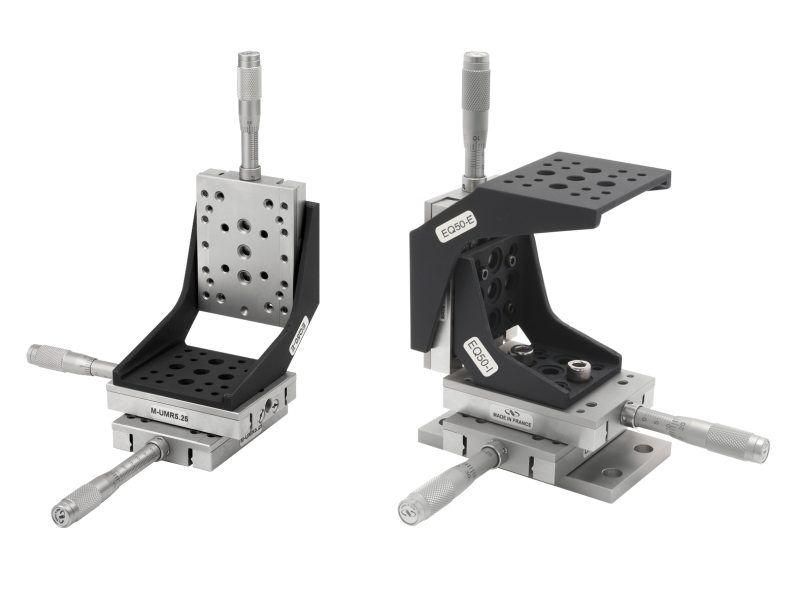 Abundant tapped hole patterns on these stages are included to provide the most options for mounting components on the stage mounting surface. Two stages can be easily stacked to provide XY translation (except the UMR5.5). Z configuration can be assembled using the EQ Series Angle Brackets.