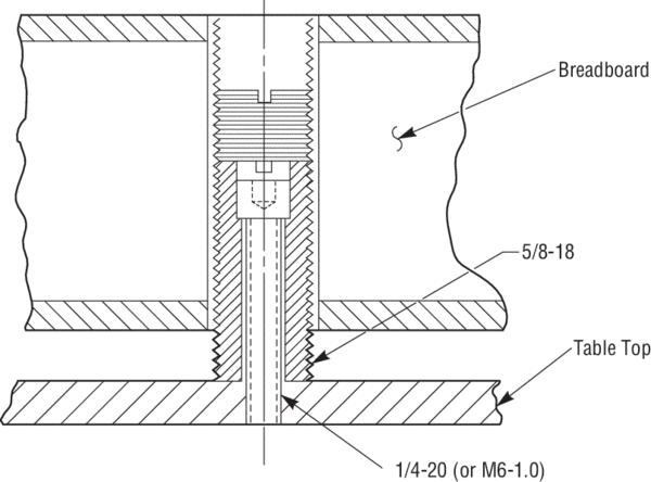 Microlock mounting feet are available for free-standing applications. These high-load-capacity feet insert into the Microlocks and prevent the breadboard from scratching or marring the support surface.