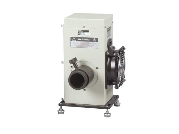 All Oriel Research Arc Lamp Housings include a built-in ignitor board and rear reflector for optimum lamp performance. The rear reflector collects backscattering from the lamp that would otherwise be lost and approximately increases the output intensity by 60%. A built-in cooling fan maintains a safe operating temperature for the lamp. The user is protected from accidental exposure to UV radiation and electrical shock by the lamp housing's safety interlock, which disables ignition and power to the lamp if the housing door or lamp housing interconnection cable is not securely connected. These four lamp housing options differ in the condenser lens assembly mounted. Condenser lens assemblies differ in the type of lens used and F/#.