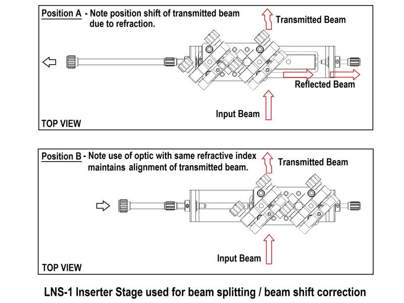 The LNS-1 stage allows you to precisely slide optics into your beam path to an exact controllable location and then easily remove them when not needed. The long rod keeps your hands away from the beam path. Two