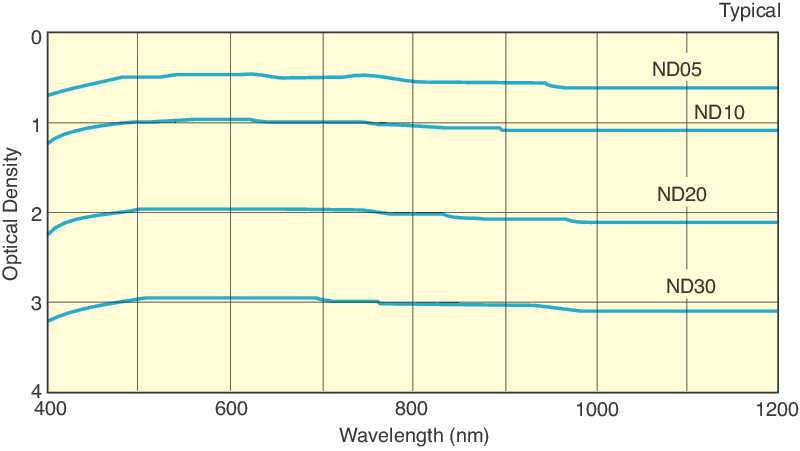 The FB-ND Optical Crown Glass Metallic Neutral Density Filter Set is a set of eight 25.4 mm diameter optical crown glass metallic ND filters of OD 0.04, 0.1, 0.3, 0.5, 1.0, 2,0 and 3.0, which includes a wood case. Our metallic neutral density coatings provide broadband attenuation for low power applications. The coating is deposited on one side of a cost-effective B 270 optical glass substrate, providing excellent performance in the visible and NIR. Filter kits provide convenience and cost savings. All filters are shipped with a transmission curve.