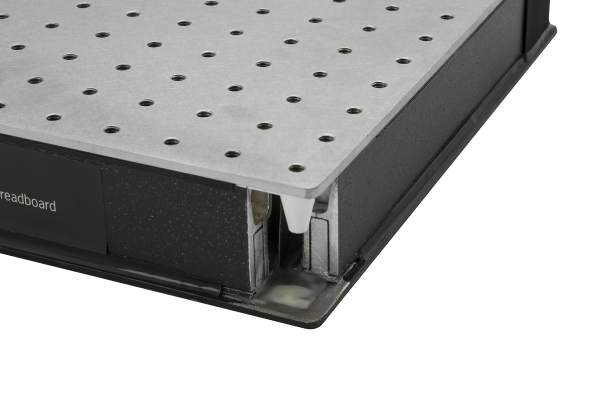 All of our optical breadboards are designed with a grid individually sealed 1/4-20 or M6 threaded mounting holes. Those mounting holes feature 19 mm screw depth. In contrast to some of the other products in the market that has channel for a row of holes or just a polymeric film, our individually sealed holes are more reliable and easier to clean. This is because we believe in the integrity of the product - especially the core. When dust and liquids go into your optical breadboard and table, it may have a long term effect on the damping performance of the product and make the product degrade over time. A good quality breadboard and table lasts long time - tens of years and more. It's a good investment for a product with sealed mounting holes.