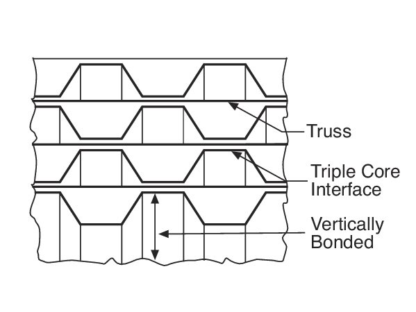 - Core DesignTrussed honeycomb, vertically bonded closed cell construction, 0.010 in. steel sheet materials, 0.030 in. triple core interface
